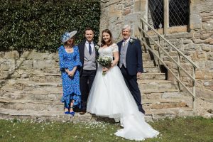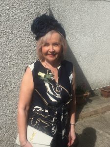 “It was greatly admired and completed my outfit perfectly, thank you so much for your help and adapting the feathers to suit. Both the ‘hat’ and the Wedding were a great success, we had an amazing day and attach a couple of snaps for you to see, apologies if the hat isn’t placed quite at the angle you suggested, I assure you it did start out well forward but there was so much hugging & kissing going on it was constantly being pushed back despite my best efforts to secure it in place! I obviously need more practise!!