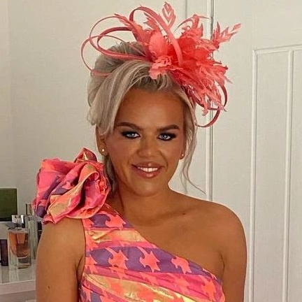 Dayna chose this fabulous Coral fascinator to complete her stunning outfit for a recent trip to the races.