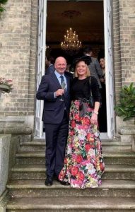 Angela chose a stunning deep red percher as a contrast to her lovely Jade green dress.