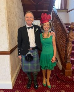 Angela chose a stunning deep red percher as a contrast to her lovely Jade green dress.