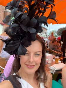 Lindsey attending ladies Day at York Races , looking simply stunning in this all feathered head piece in black hired from Jane at our Pickering Showroom.