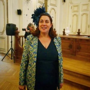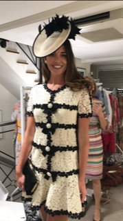 She is wearing this striking headpiece at a recent wedding in France. She looked stunning and received lots of compliments.