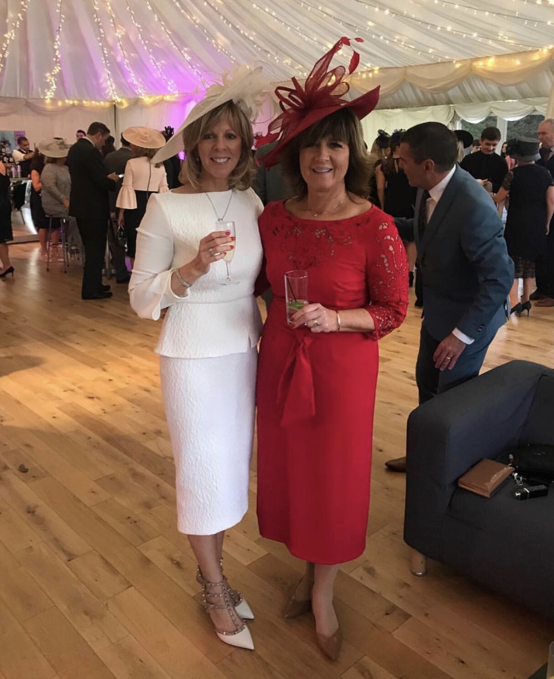 Louise from our Wrexham Branch has sent in this photo of her lovely clients at a New Years Eve Wedding. Jill’s orange silk and feather hat was fabulous with her beautiful dress and Helen’s hat is from our bespoke range and was made to match her red dress perfectly. Both look stunning! Ring for appointment on tel 01978 780669 or email louise@getaheadhats.co.uk at the Eyton Wrexham showroom.”