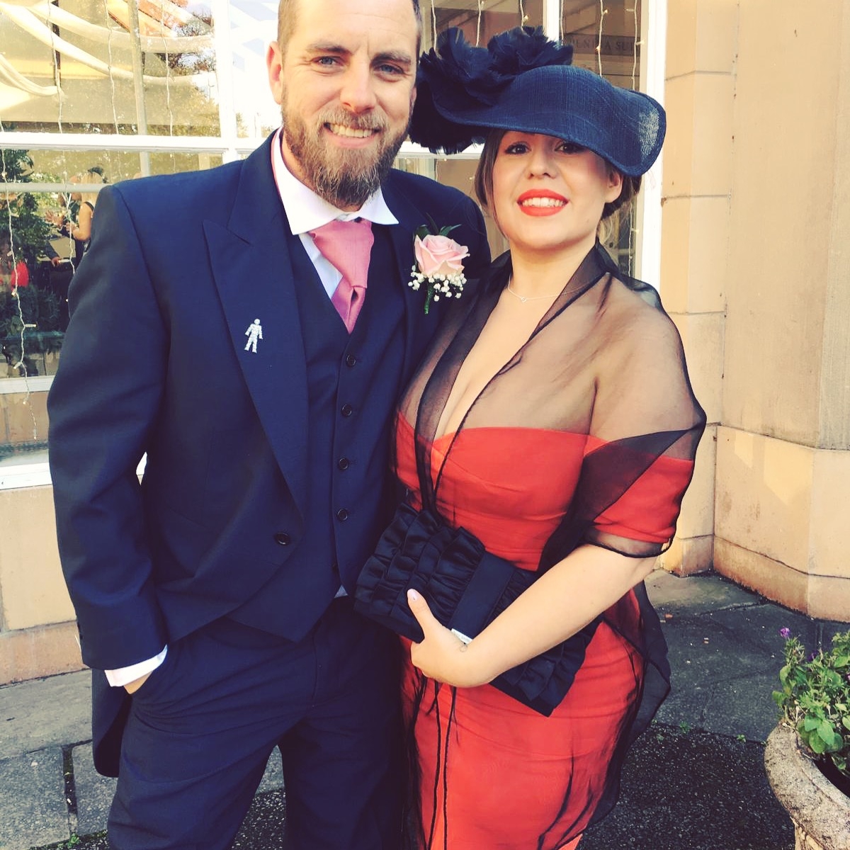 Simone hired this bespoke Navy Percher to compliment her coral dress & along with the other navy accessories looks fab!
