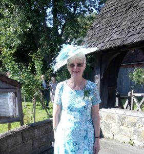 This is Lesley who matched her outfit perfectly with this Aqua Blue Percher hired from Jenny at our Lincoln Showroom for her son’s Wedding recently.