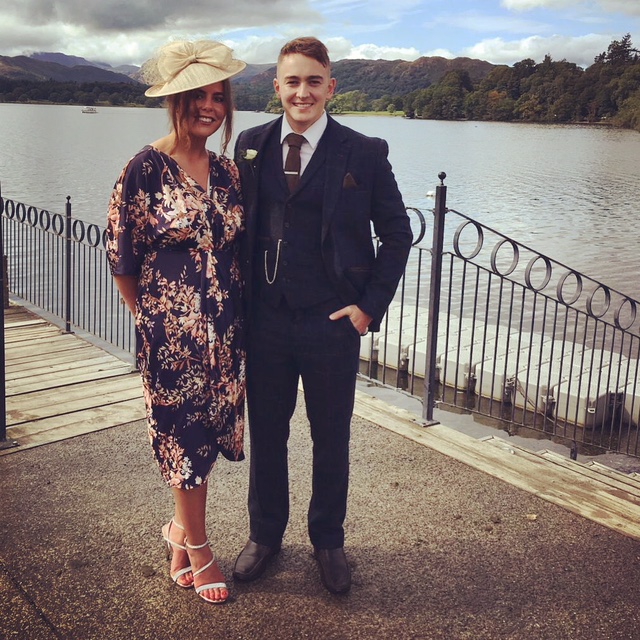 This is Heather who was Mother of the Bride recently wearing a silver grey hat from one of our top Milliners hired from our Lanchester Branch which complimented the cerise dress beautifully
