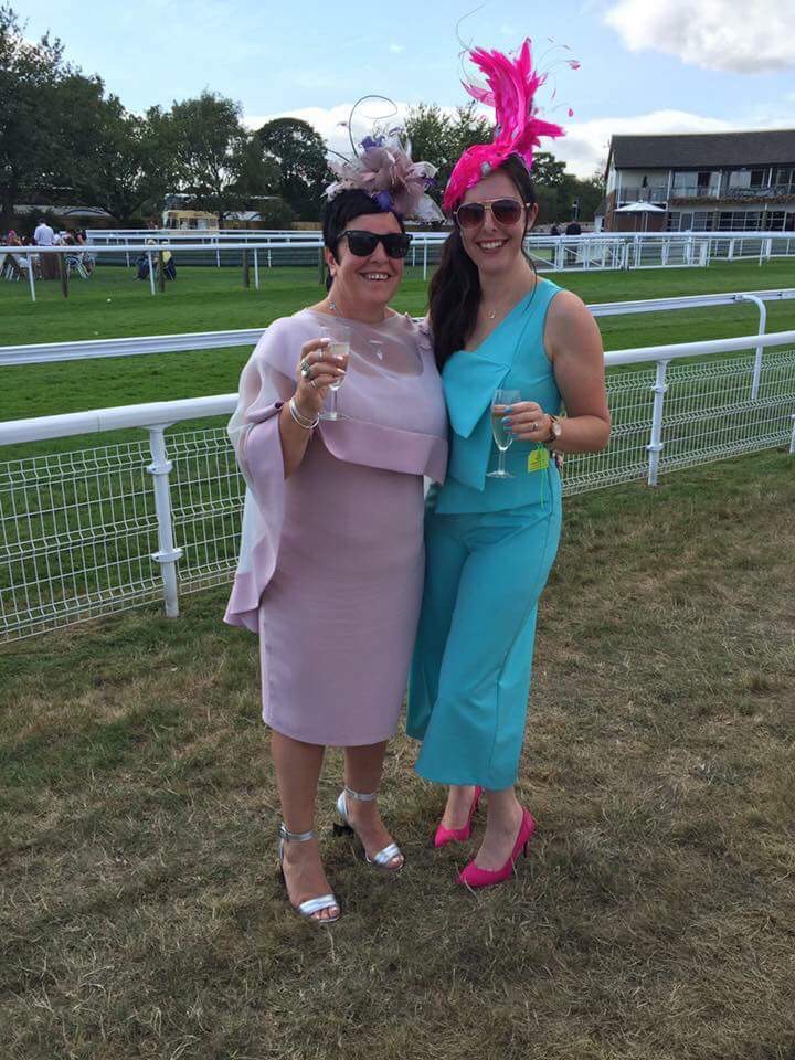 Lyndsey is wearing a hat hired from Jane & is pictured with her mum at Beverly Races Ladies Day.
