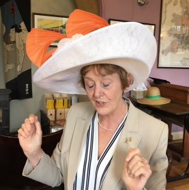 Also pictured is Sandra Turner who is a regular visit to Margeret Duncan’s Reading showroom. The stunning pillbox percher matched Sandra’s outfit perfectly.