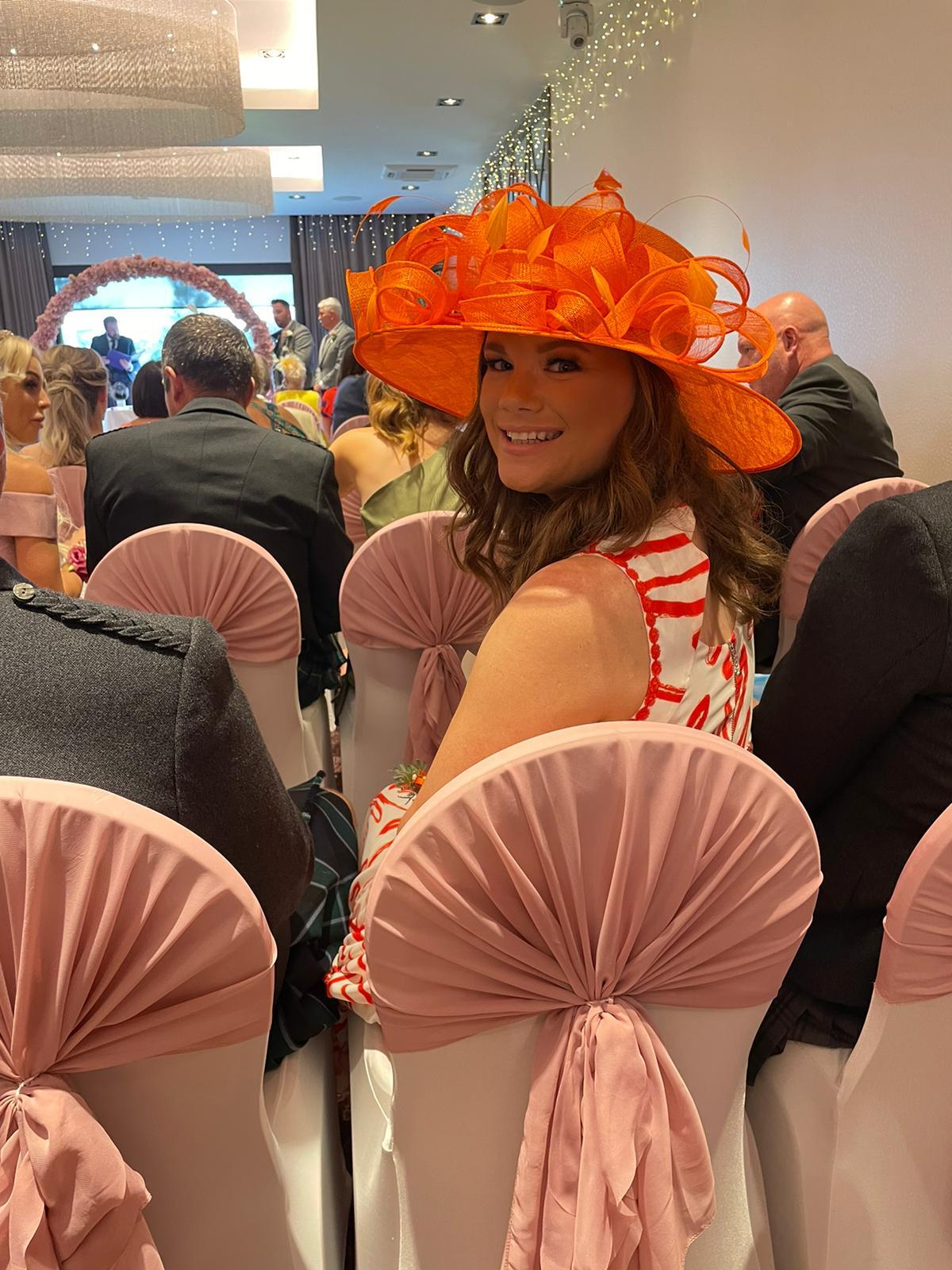 Anna in orange was delighted to attend her first wedding as an adult and loved her hat so much she didn’t want to give it back!