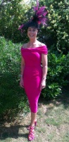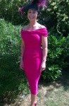 Pictured is Kate Grundy wearing a fabulous black and cerise Dillon