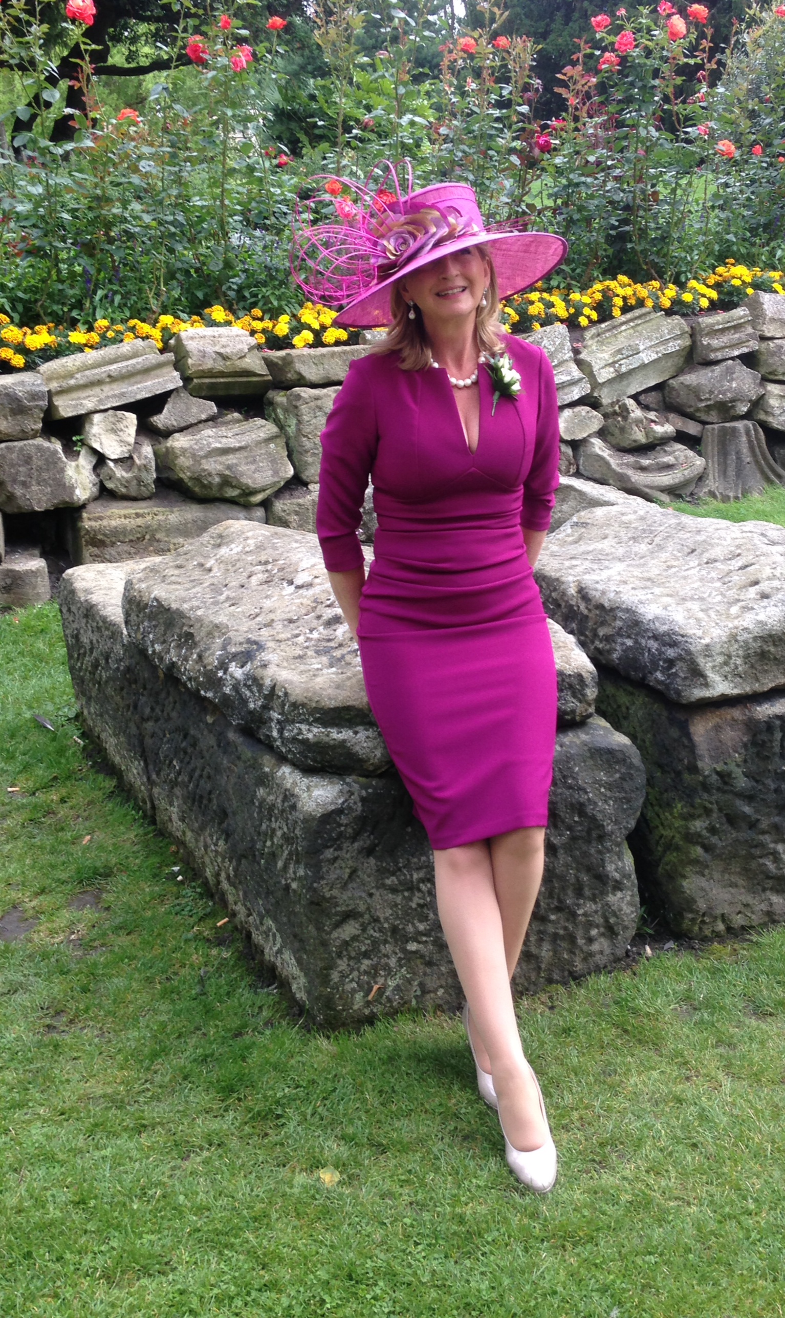 Thank you to Sue Milburn for sending this picture taken at her son’s wedding in the Museum Gardens in York to Jane Wheldon from our Pickering branch. Sue said “the hat I hired from Jane’s showroom just matched perfectly to my dress , the day was just fantastic.”