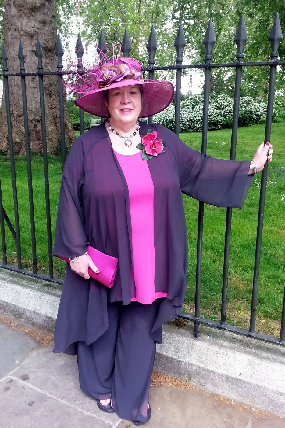 Jane Wheldon from Pickering Get Ahead Hats received these lovely pictures from Wendy Medd who recently attended a garden party at Buckingham Palace. Wendy said “The Garden Party was a huge success. I received many compliments about the hat. Did not budge in the gusts of wind!”  She even managed the large hat box on the train!