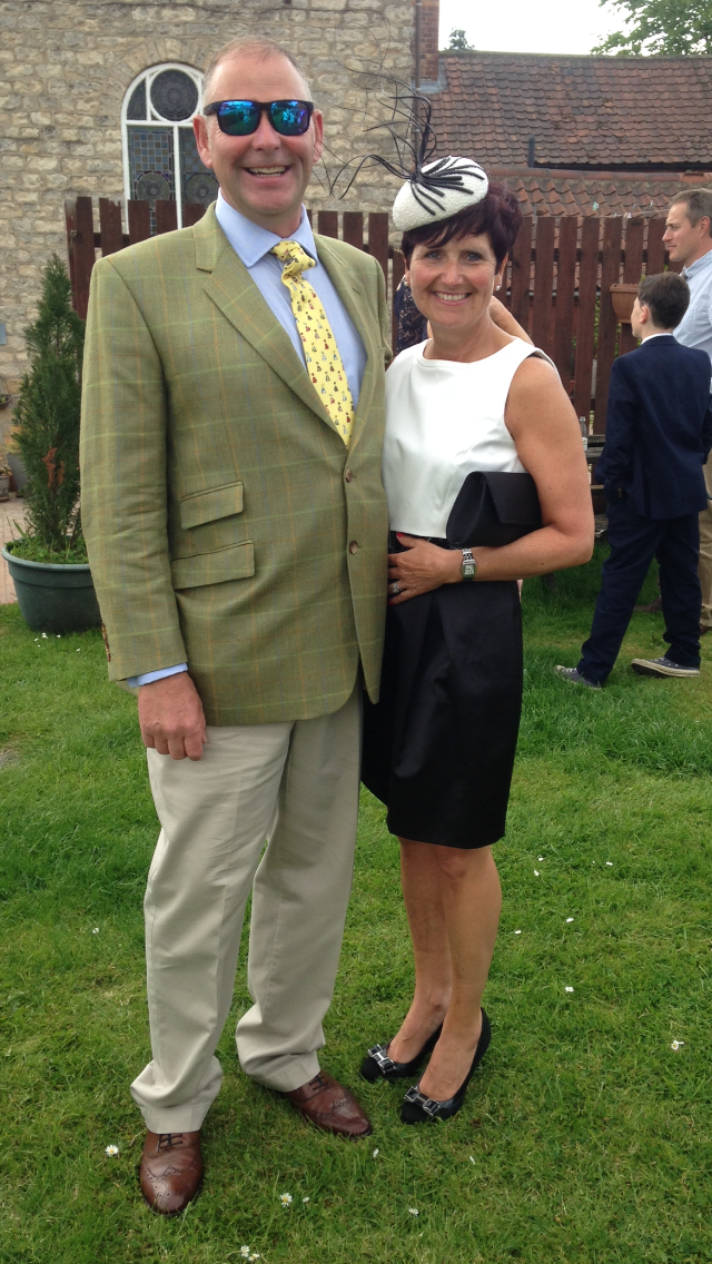 Pictured are Mr & Mrs Staveley attending  the now Mr & Mrs Harrison wedding.  Jane Wheldon supplied this lovely pillbox from her Pickering showroom. Mrs Staveley said ” a great day was had by all , it was just the perfect day & the weather was glorious”.