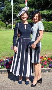 Sarah looked fantastic at Ascot in June wearing this bespoke percher which was stunning with her navy and pink dress.