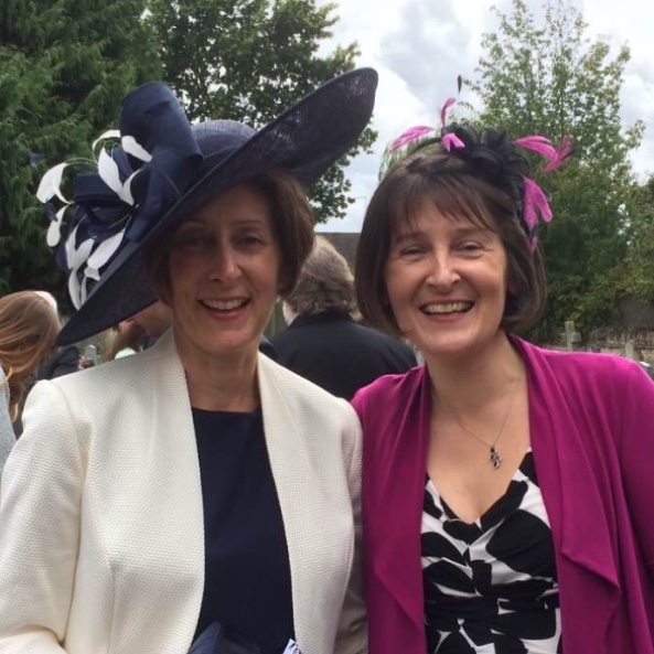 Laura is wearing a bespoke Navy Percher & Pam is wearing a lovely Navy & White Hat both hired for the day & match beautifully.