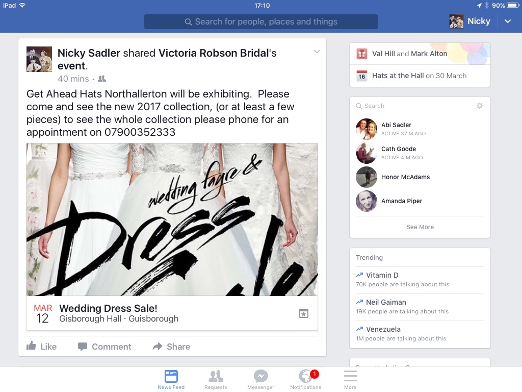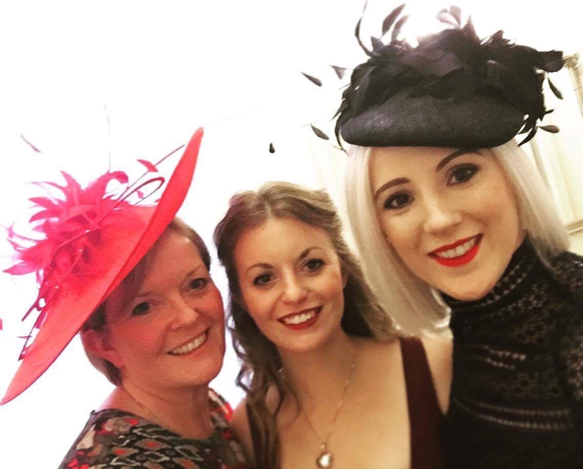 Nicky says ‘ Two lovely customers wearing headpieces from Northallerton Get Ahead Hats. Tor in the navy has a beautiful Wedding dress shop in Northallerton and her friend is in the red. Good to keep small business going, shop locally.’