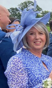 Lovely photo of Sian at her recent daughters wedding. Such a beautiful shade of cornflower blue and we had the perfect headpiece to match in the boutique