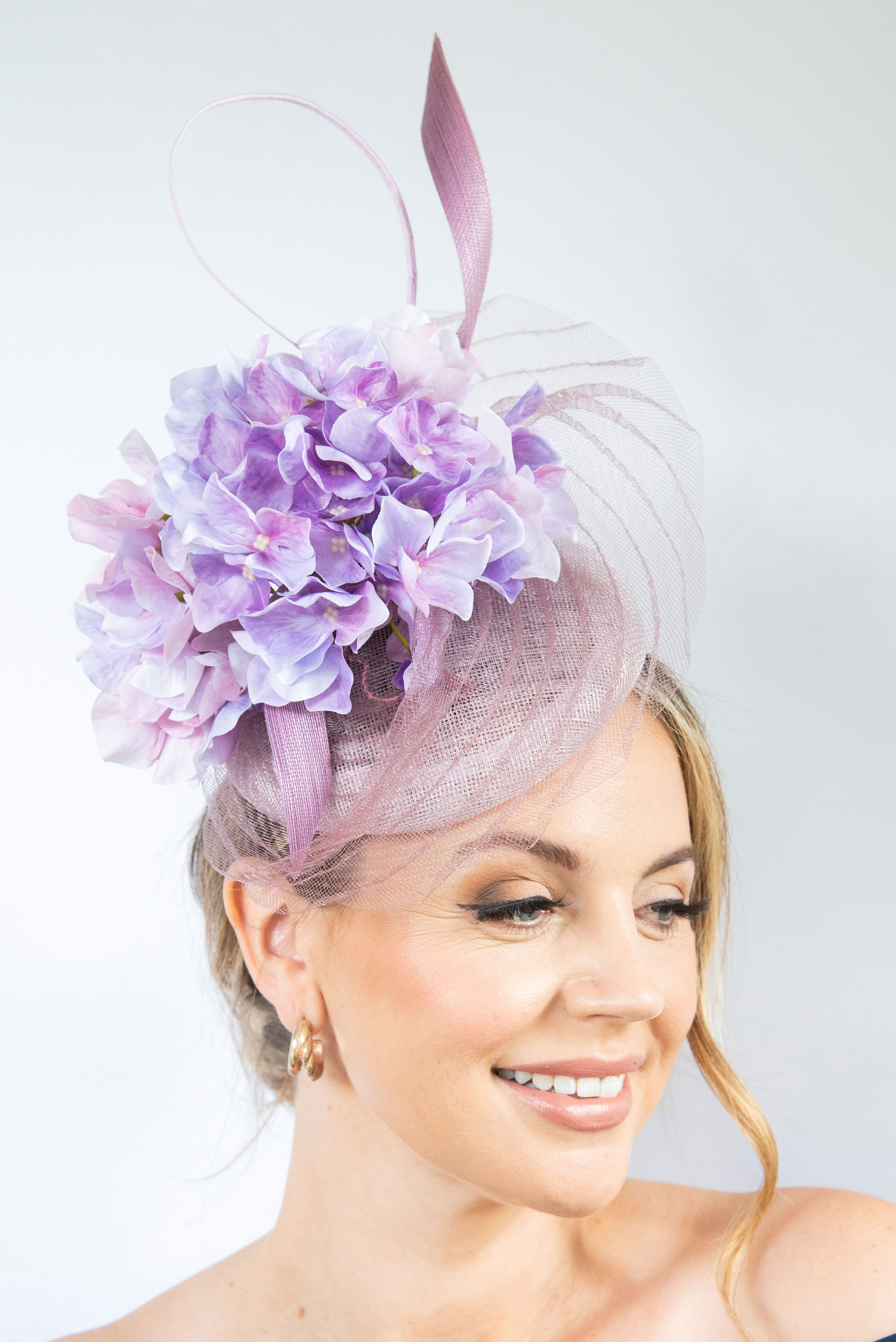 RC1214Rachel Couture hat lilac flowers