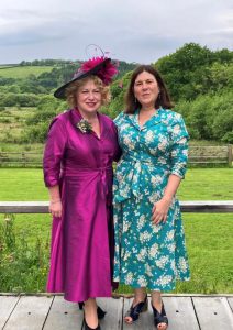 The lovely Audrey looking stunning at her sons wedding in her magenta pink silk Bombshell dress and matching hat! Absolutely gorgeous! 💕
