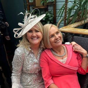 Returning customer Donna, looking fabulous at her son’s recent wedding. we added extra sparkle to her fascinator to perfectly match her lovely sparkly dress.