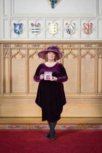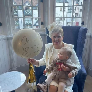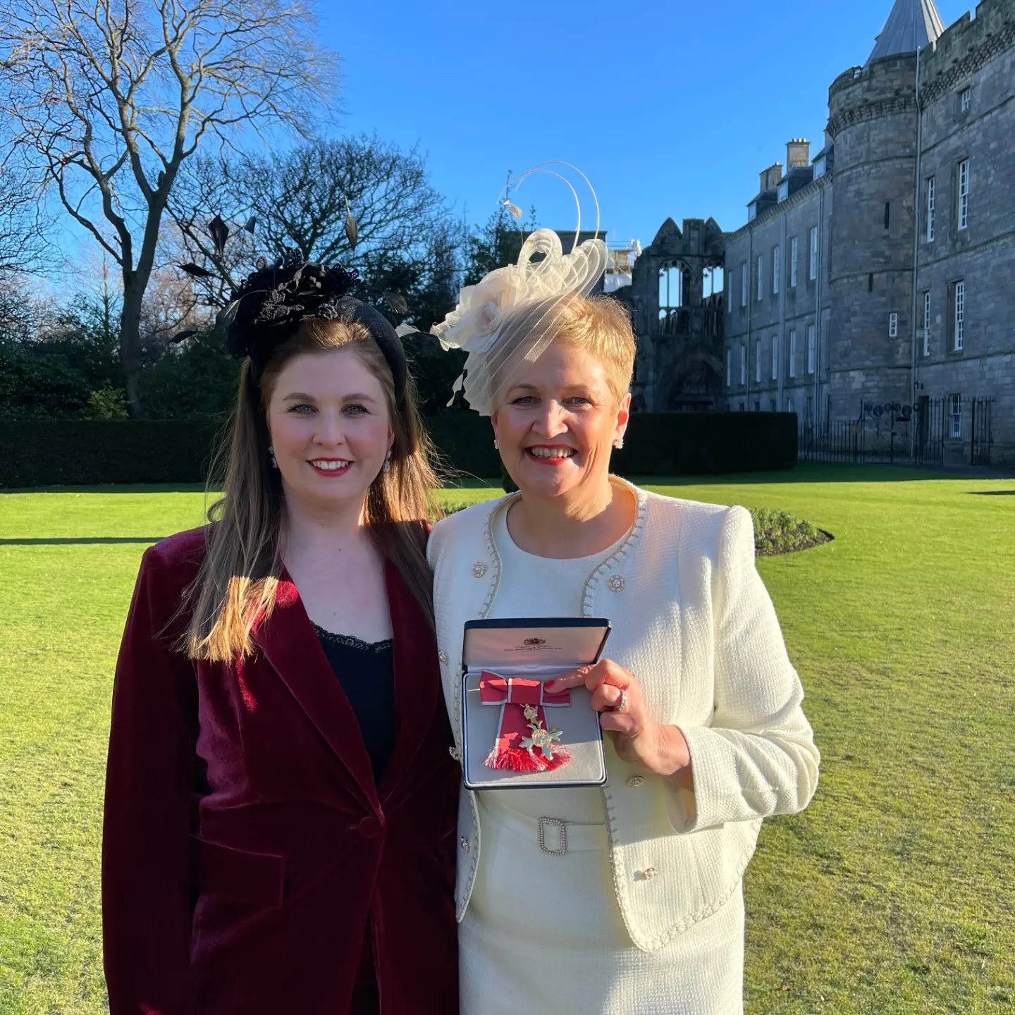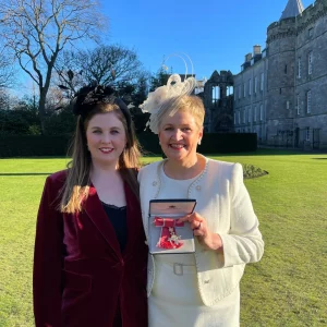 Returning customer, Rhona, looking stunning on a nice sunny day in January. A beautiful outfit complimented by a stylish fascinator to receive her well deserved award.