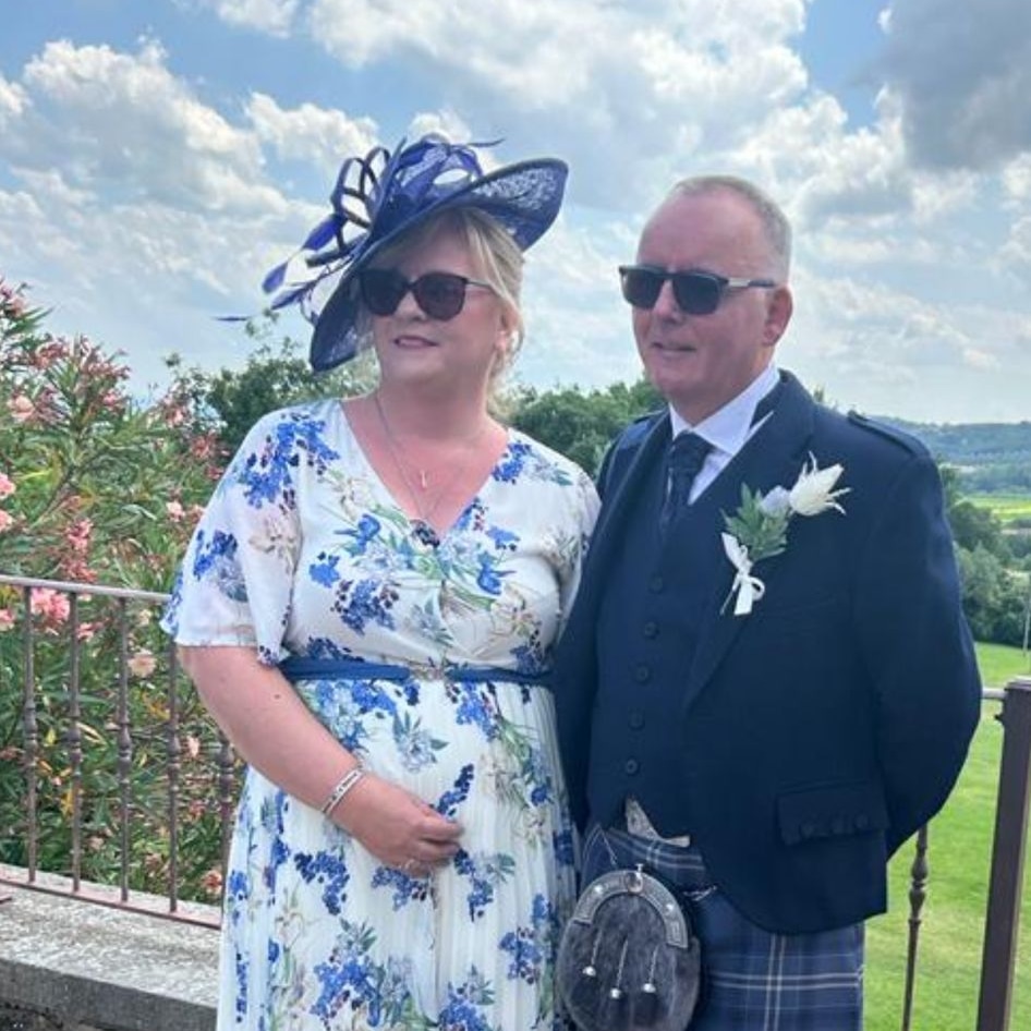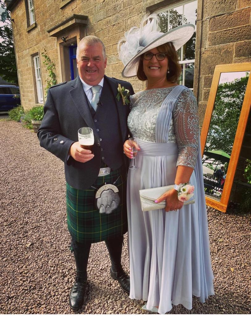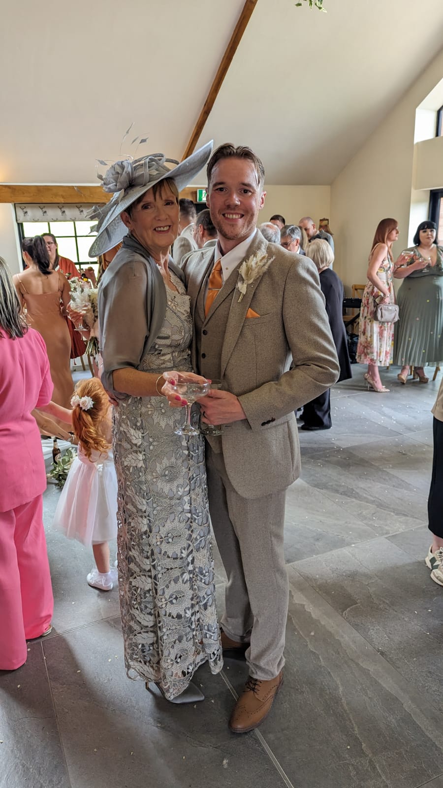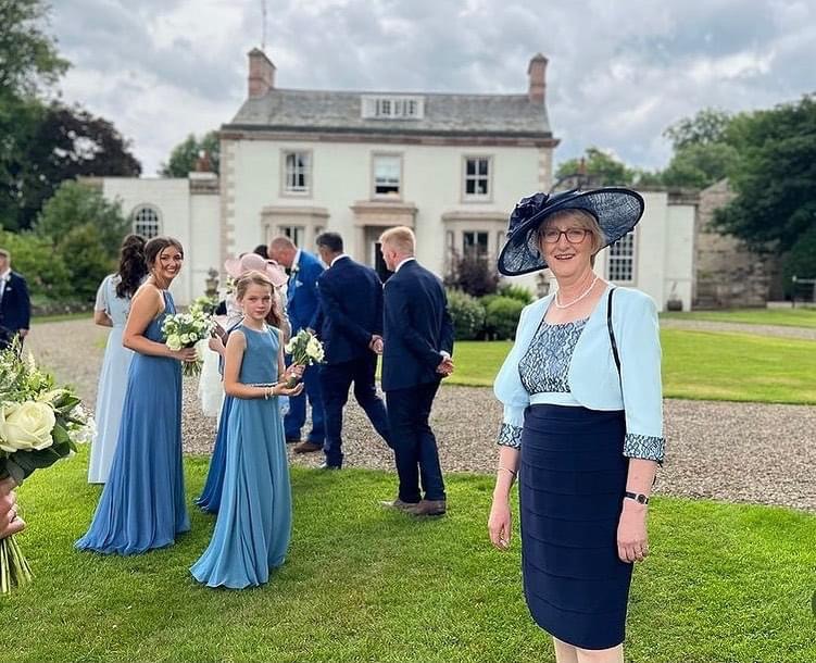 A great photo of Jackie at her daughter’s wedding recently in a lovely navy hat hired from the Penrith showroom to coordinate perfectly with her dress 😊 call Bev on 017684 84740 for an appointment