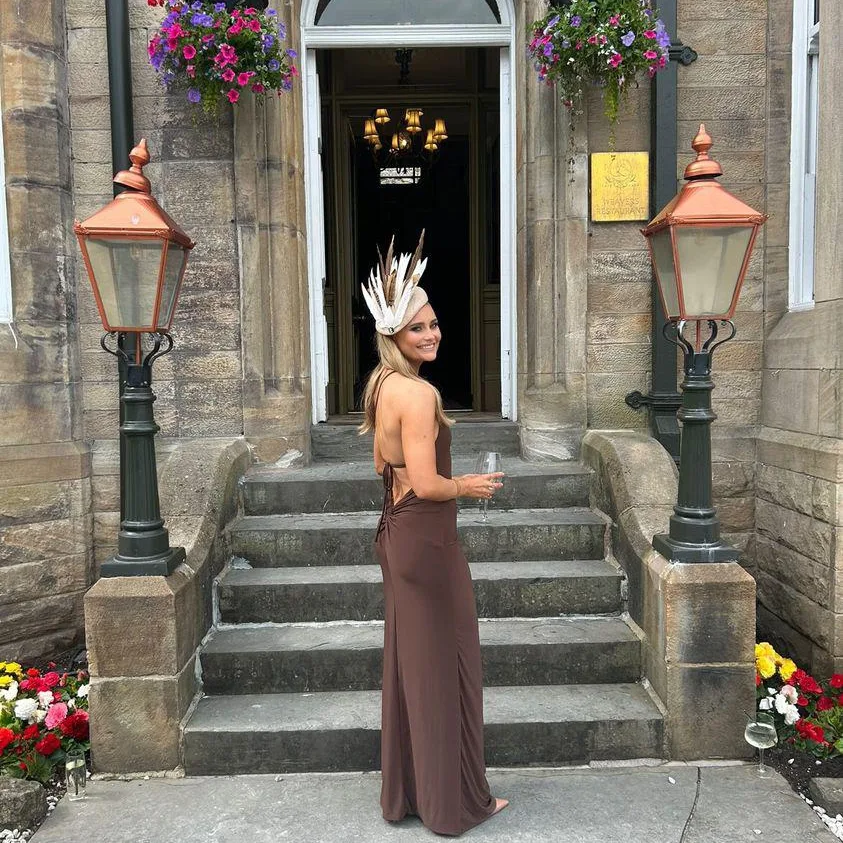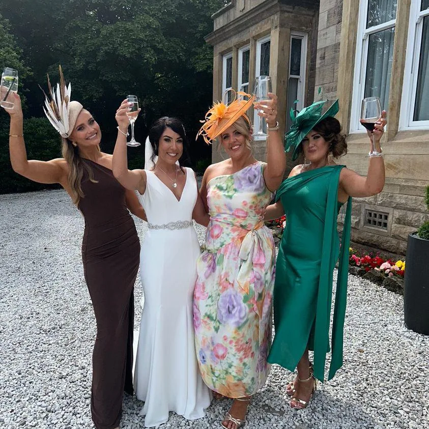 Rachel picked her percher over a year ago, then bought a dress to match! She also introduced her friends to the wonderful world of hat hire – Cheers Ladies!