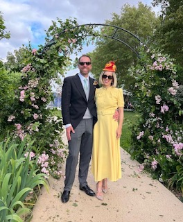 The lovely Sarah at a wedding this weekend in a fabulous Percher in a yellow & orange combination hired from our Penrith showroom, call Bev on 017684 84740 for an appointment 🧡