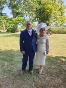 The lovely Amanda who bought her hat from our Penrith showroom in silver grey & ivory which complemented her dress perfectly.
