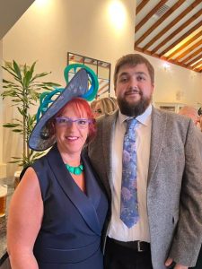 What a lovely couple pictured here on St Patrick’s Day at Cheltenham Festival. This green headband had many compliments on the day. If you wish to hire or buy please contact Jane at the Pickering showroom.