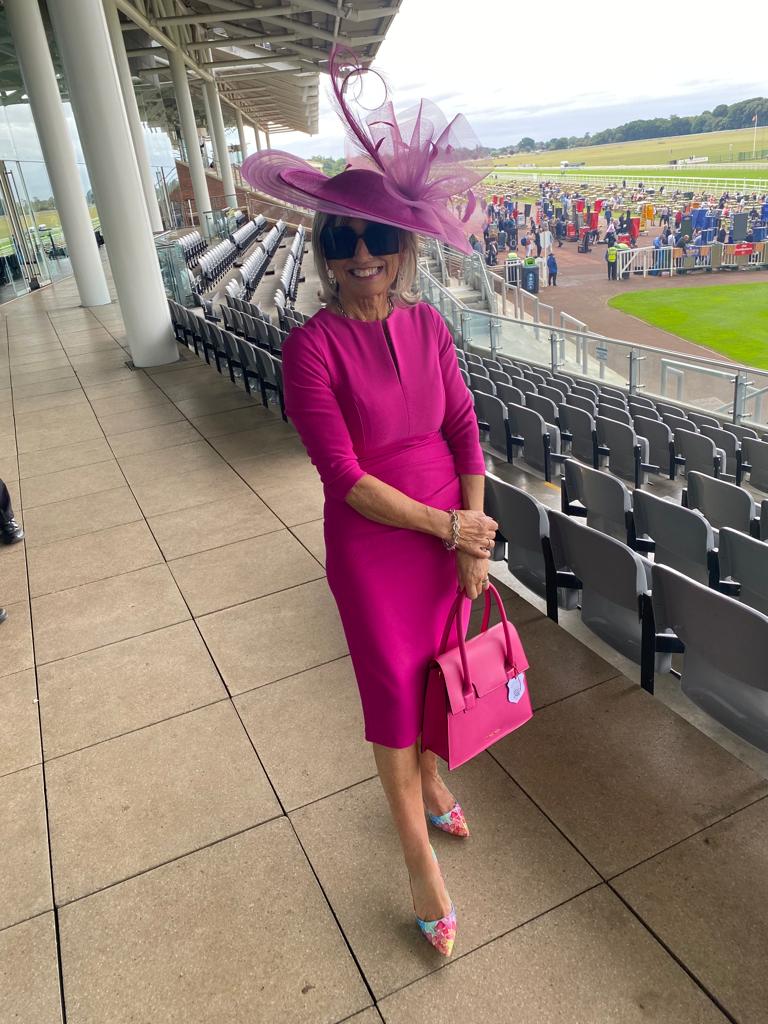 What a fabulous photo of Diana in a magenta hat at York Races.