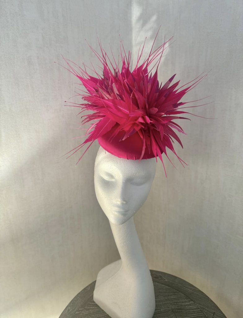 Cerise pink silk pillbox with feather and glitter trim for sale price