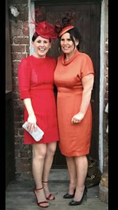 Louise from our Wrexham Branch has sent in this photo of her  lovely clients at a New Years Eve Wedding. Jill’s orange silk and feather hat was fabulous with her beautiful dress and Helen’s hat is from our bespoke range and was made to match her red dress perfectly. Both look stunning!  Ring for appointment on tel 01978 780669 or email louise@getaheadhats.co.uk at the Eyton Wrexham showroom.”